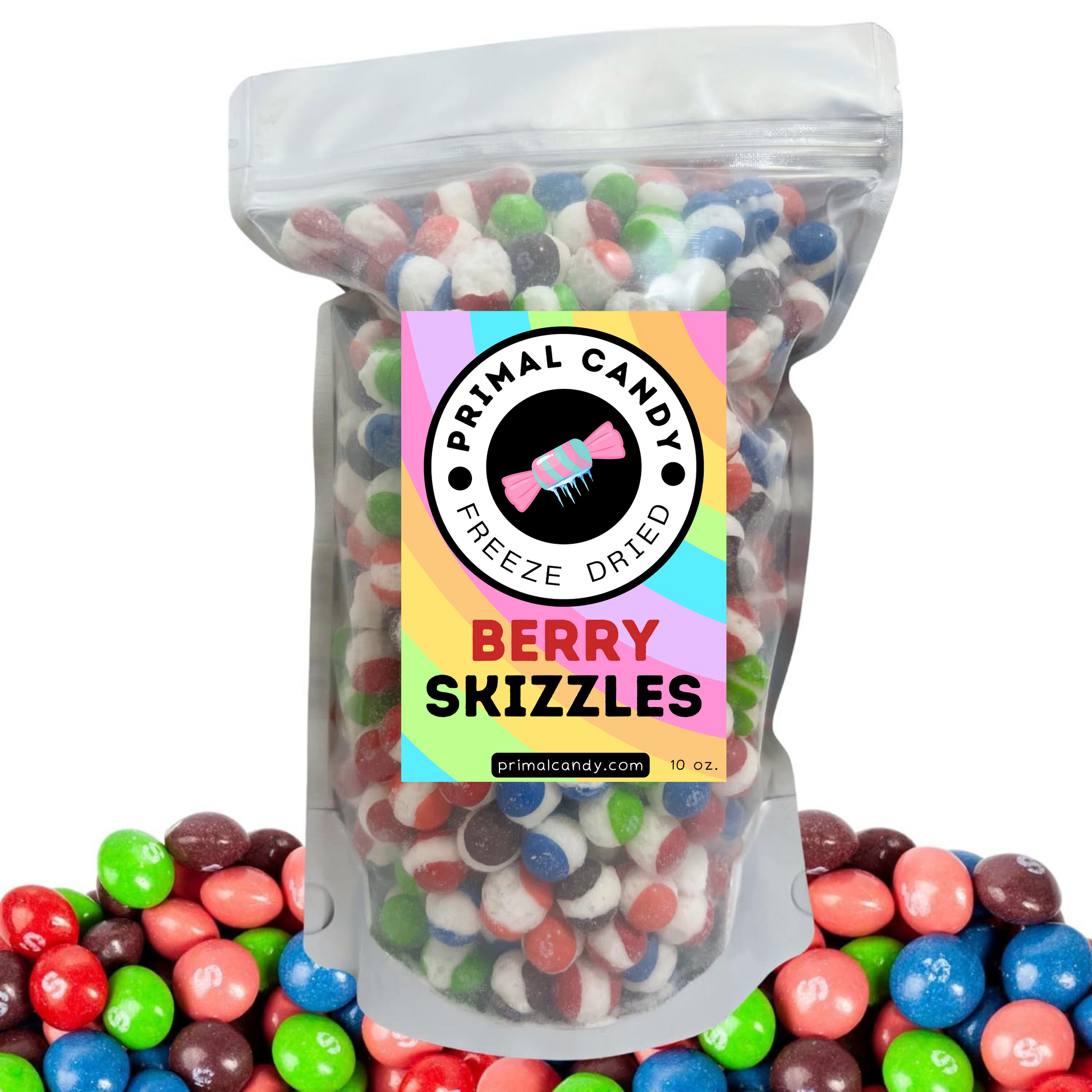 - Includes: 2, 6, or 10 oz. of freeze-dried Berry Skizzles! A unique and delicious twist on a classic treat. Each piece of candy undergoes a specialized freeze-drying process, resulting in a crispy and airy texture that explodes with fruity flavor!